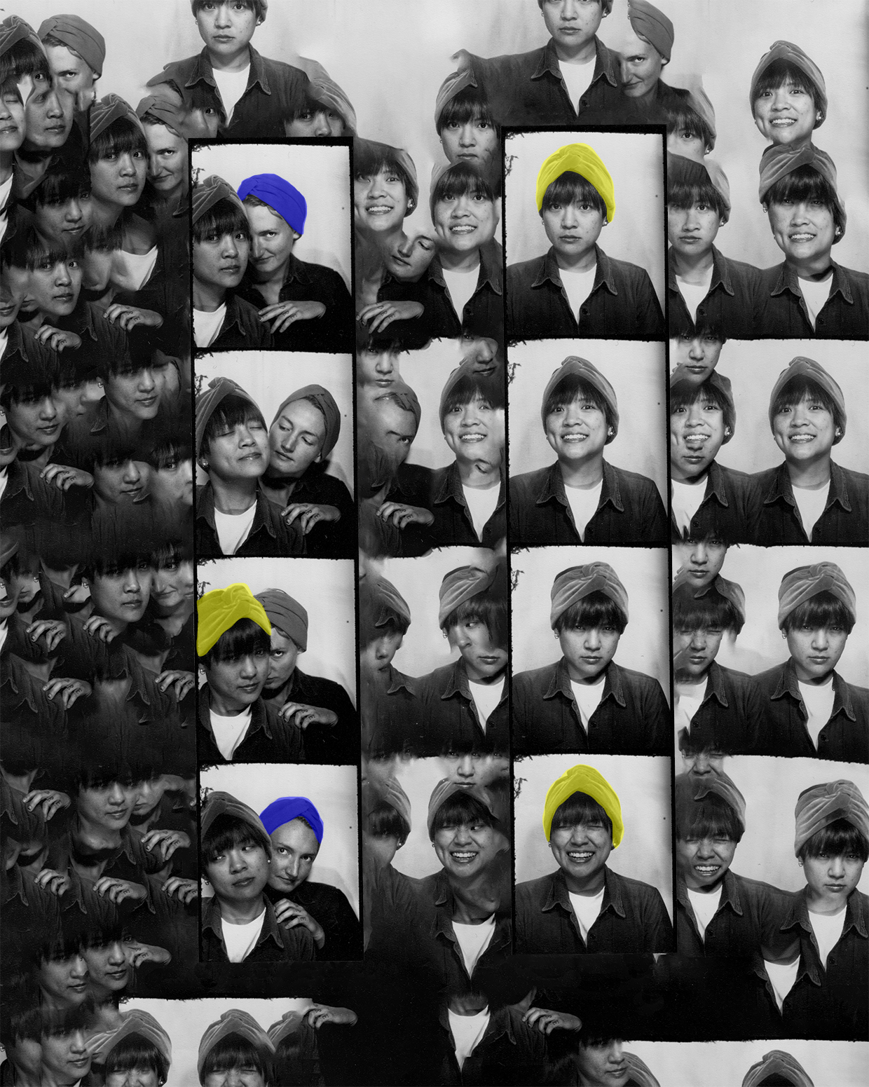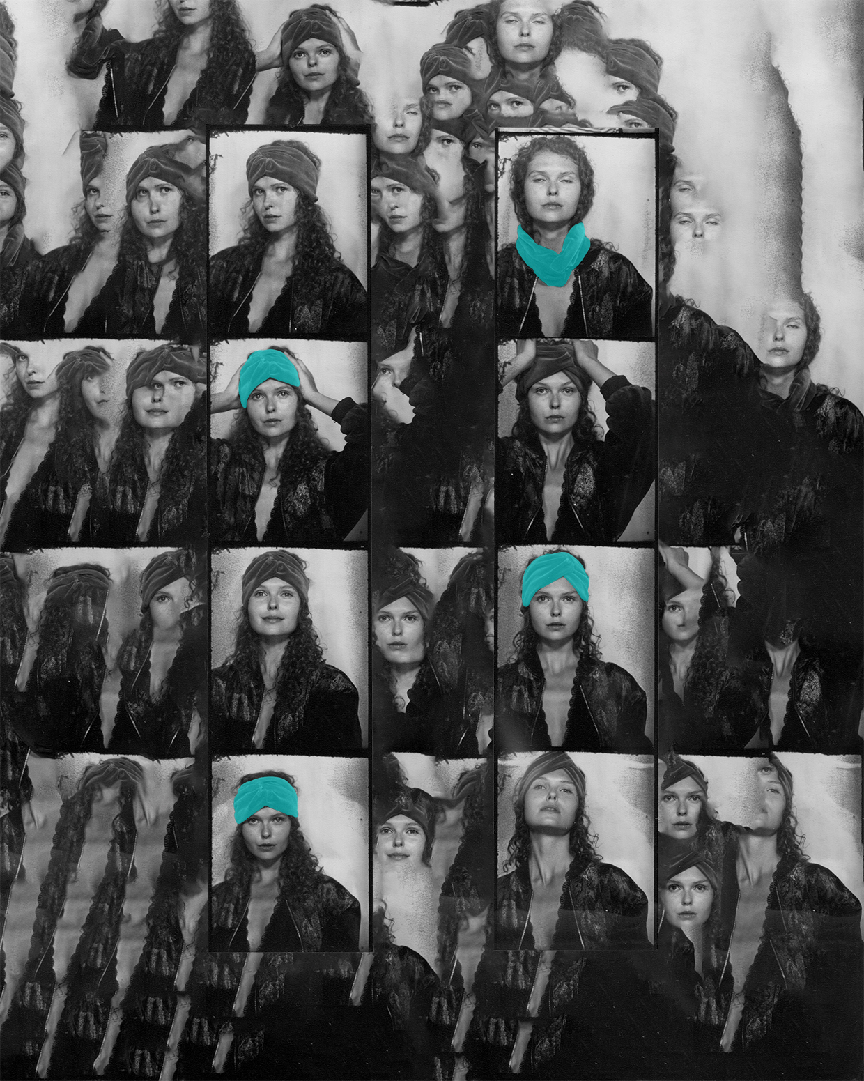 Analogue photography and digital collage. Chemical photobooth.