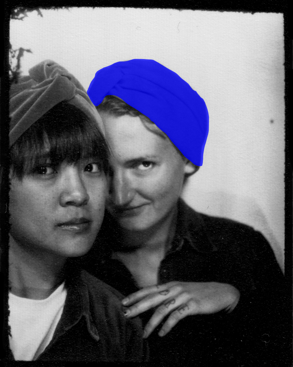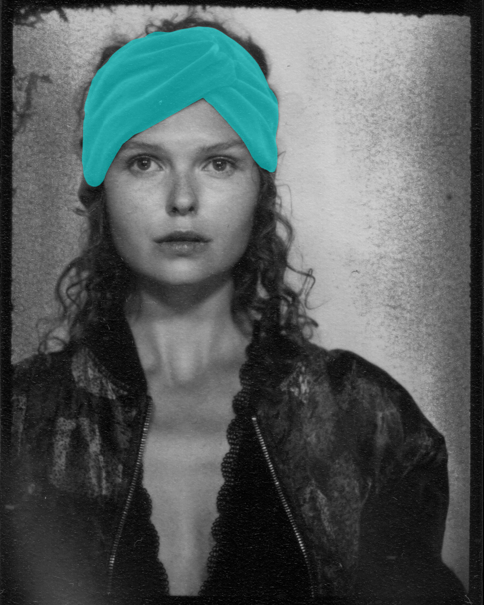 Portraits of Yun, Joshua, Myrte, Jorke and Katja wearing turbans designed and crafted by Atelier Park 217 Berlin.